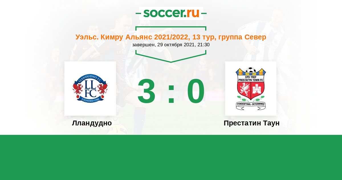 Лландудно - Престатин Таун: обзор матча 29 октября 2021