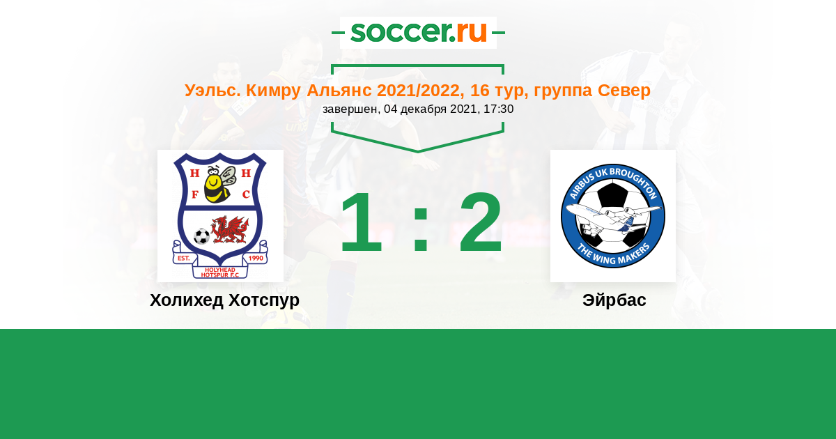 Холихед Хотспур - Эйрбас: обзор матча 4 декабря 2021
