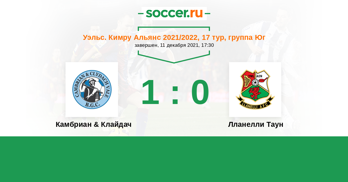 Камбриан & Клайдач - Лланелли Таун: обзор матча 11 декабря 2021