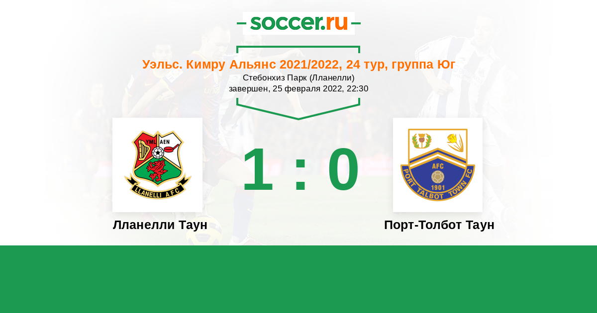 Лланелли Таун - Порт-Толбот Таун: обзор матча 25 февраля 2022