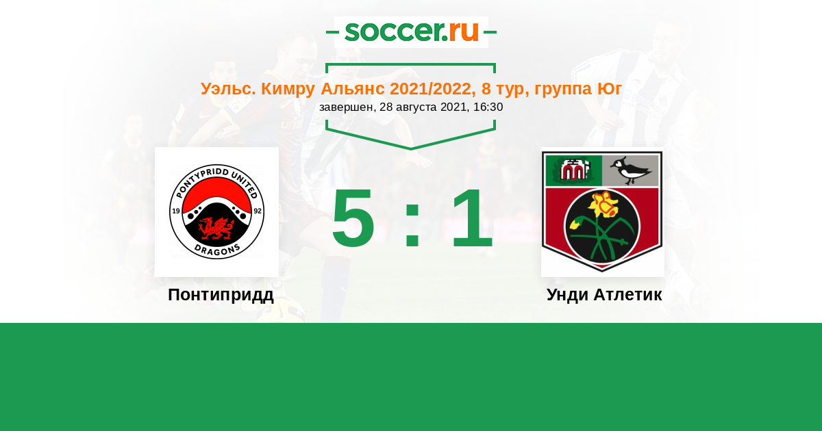 Понтипридд - Унди Атлетик: обзор матча 28 августа 2021