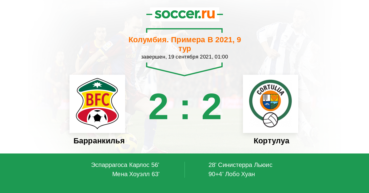 Барранкилья - Кортулуа: обзор матча 19 сентября 2021