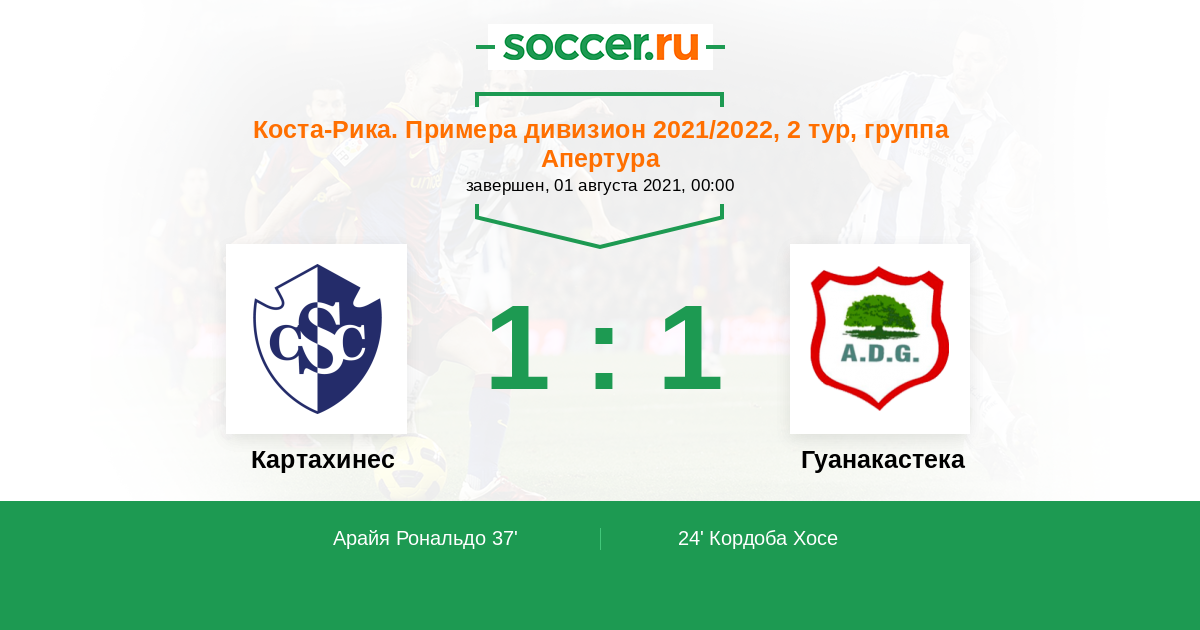 Картахинес - Гуанакастека: обзор матча 1 августа 2021