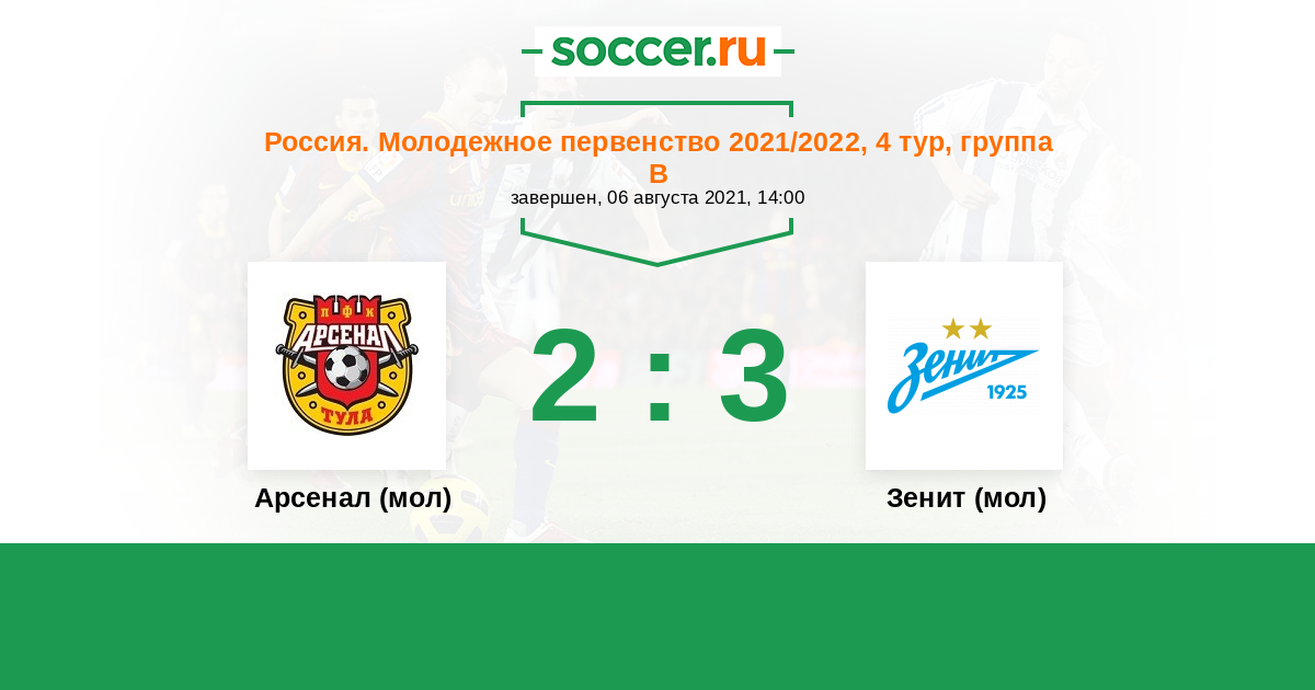 Арсенал (мол) - Зенит (мол): обзор матча 6 августа 2021