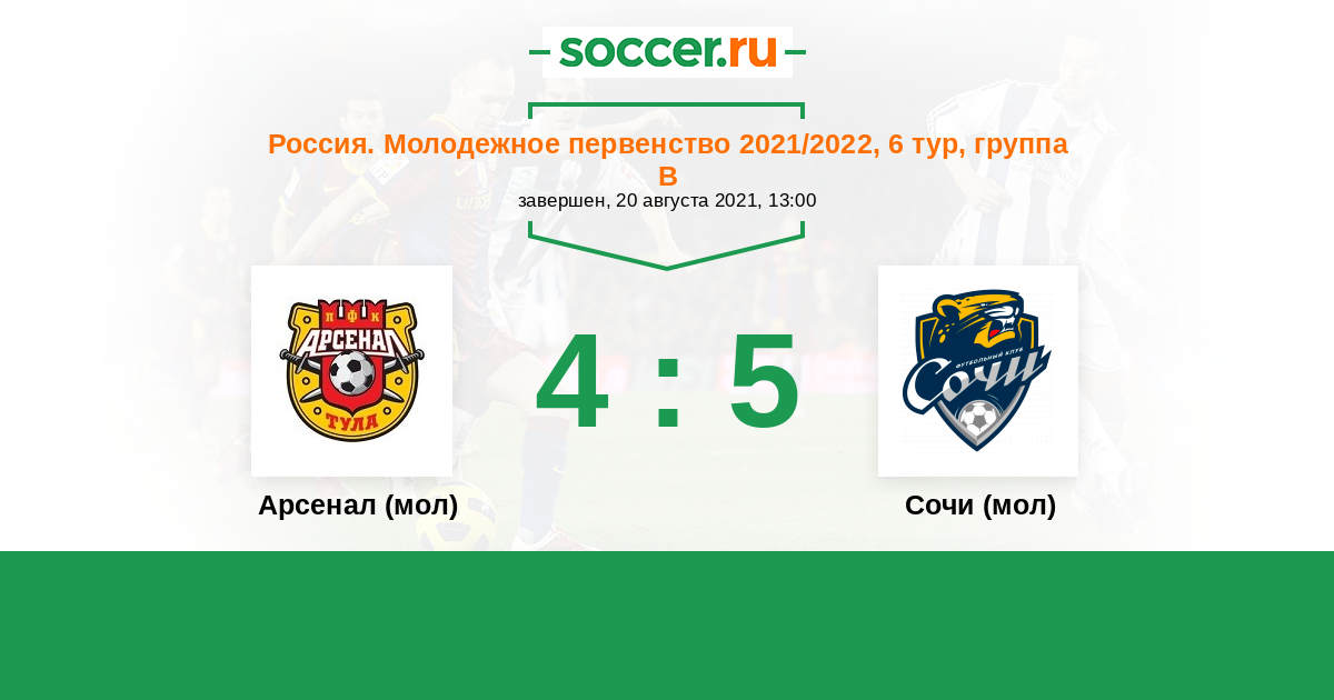 Арсенал (мол) - Сочи (мол): обзор матча 20 августа 2021