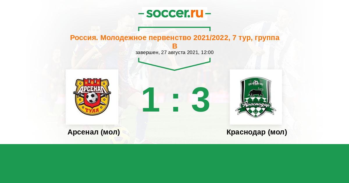 Арсенал (мол) - Краснодар (мол): обзор матча 27 августа 2021