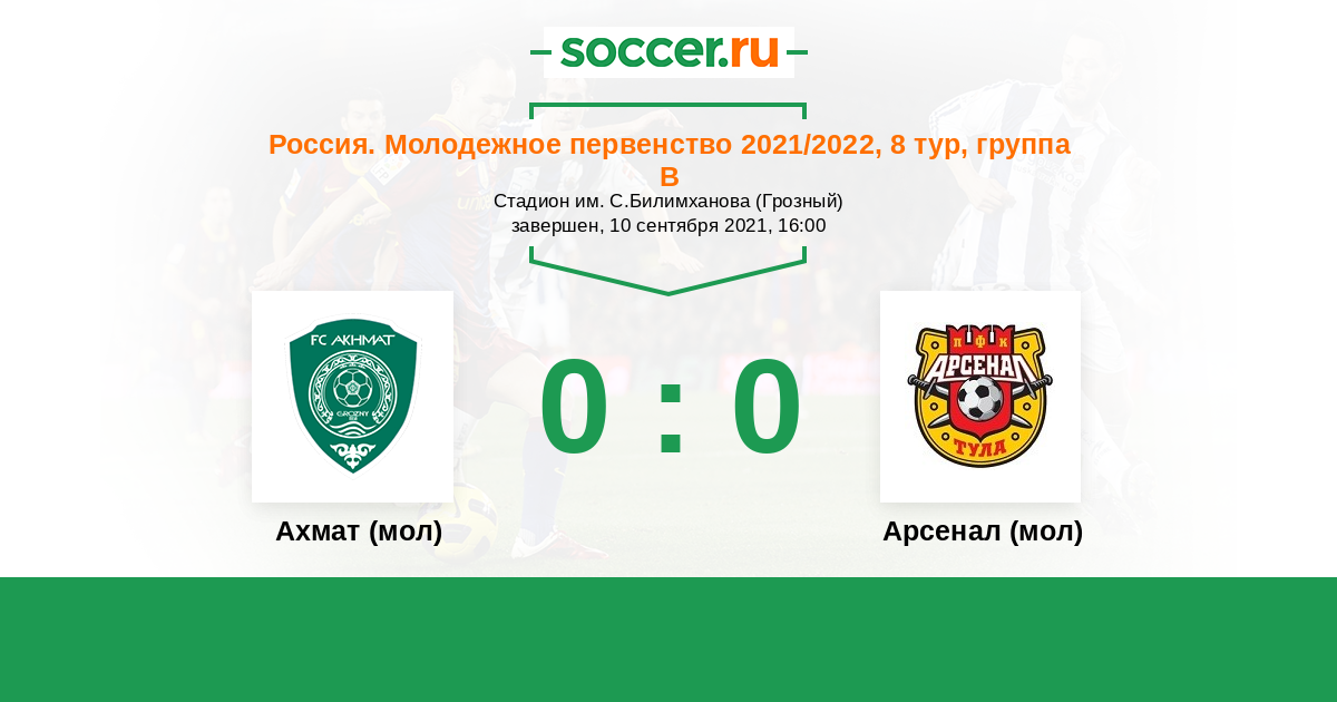 Ахмат (мол) - Арсенал (мол): обзор матча 10 сентября 2021