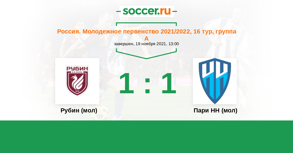 Рубин (мол) - Пари НН (мол): обзор матча 19 ноября 2021