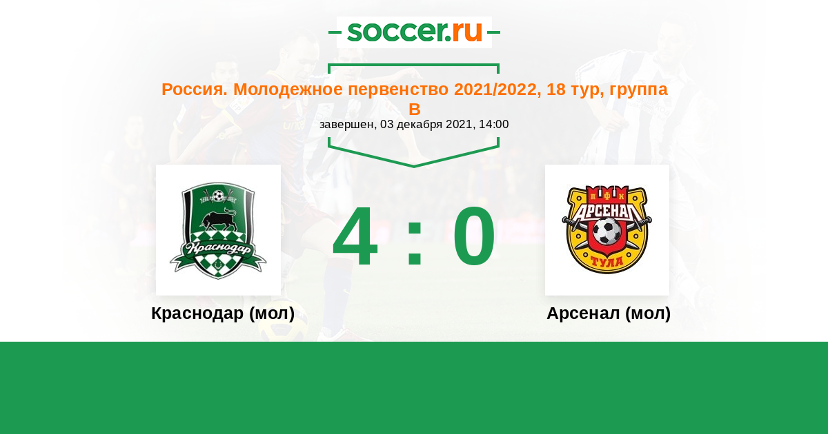 Краснодар (мол) - Арсенал (мол): обзор матча 3 декабря 2021