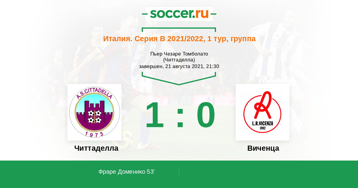 Читтаделла - Виченца: обзор матча 21 августа 2021