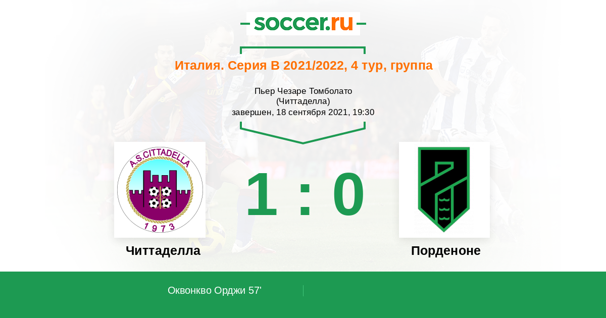 Читтаделла - Порденоне: обзор матча 18 сентября 2021