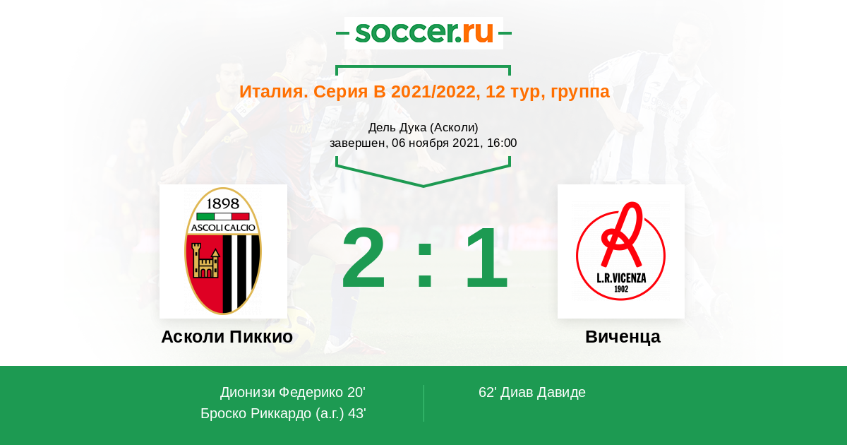 Асколи Пиккио - Виченца: обзор матча 6 ноября 2021