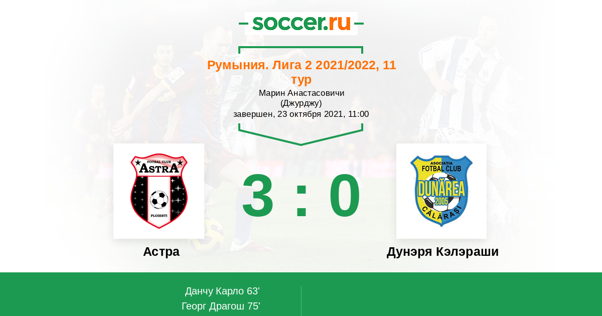 Астра - Дунэря Кэлэраши: обзор матча 23 октября 2021