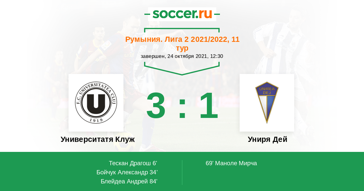 Университатя Клуж - Униря Дей: обзор матча 24 октября 2021