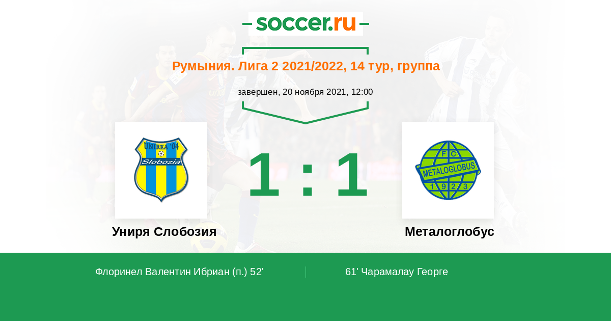 Униря Слобозия - Металоглобус: обзор матча 20 ноября 2021