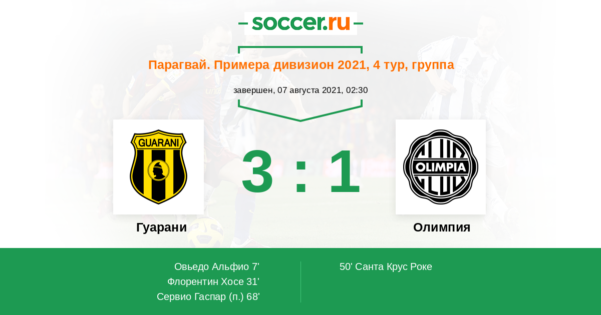 Гуарани - Олимпия: обзор матча 7 августа 2021