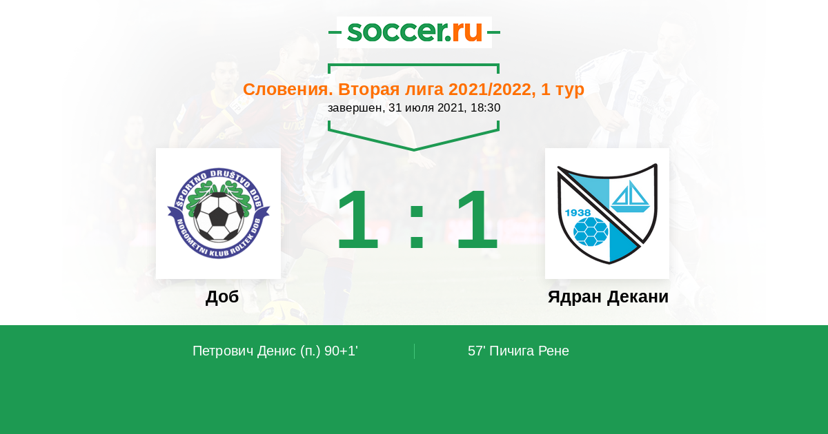 Доб - Ядран Декани: обзор матча 31 июля 2021