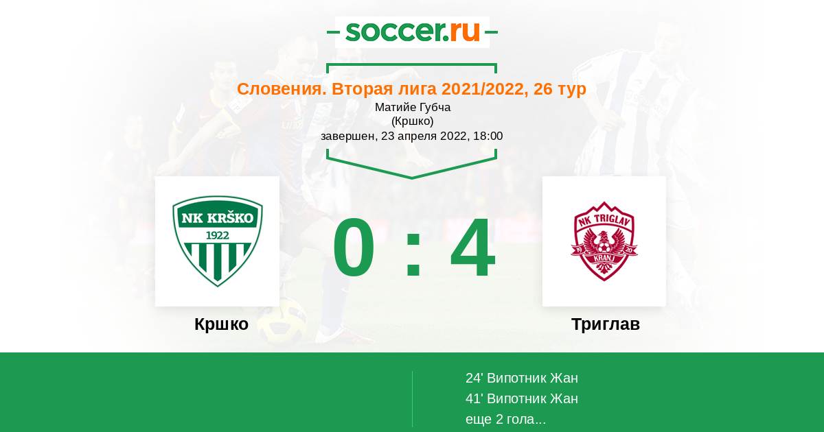 Кршко - Триглав: обзор матча 23 апреля 2022