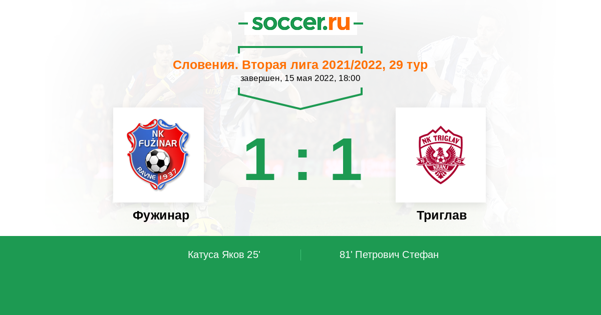 Фужинар - Триглав: обзор матча 15 мая 2022
