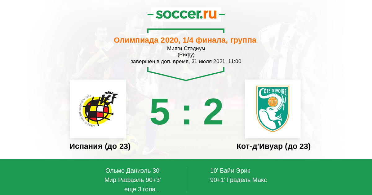 Испания (до 23) - Кот-д'Ивуар (до 23): обзор матча 31 июля 2021