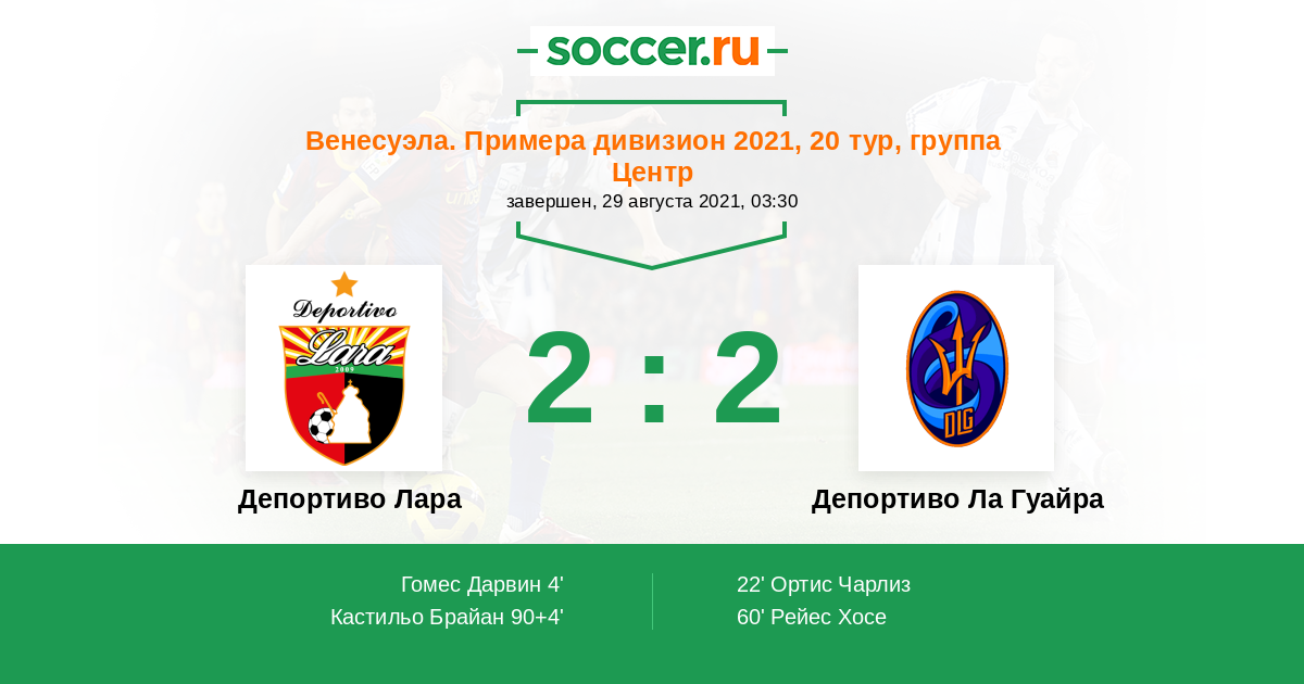 Депортиво Лара - Депортиво Ла Гуайра: обзор матча 29 августа 2021