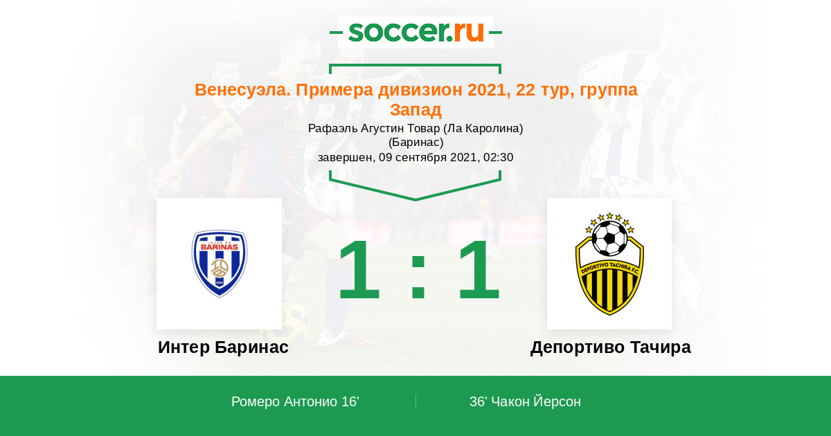 Интер Баринас - Депортиво Тачира: обзор матча 9 сентября 2021