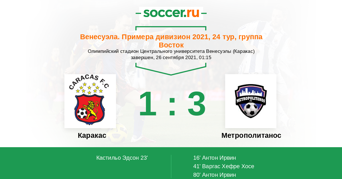 Каракас - Метрополитанос: обзор матча 26 сентября 2021