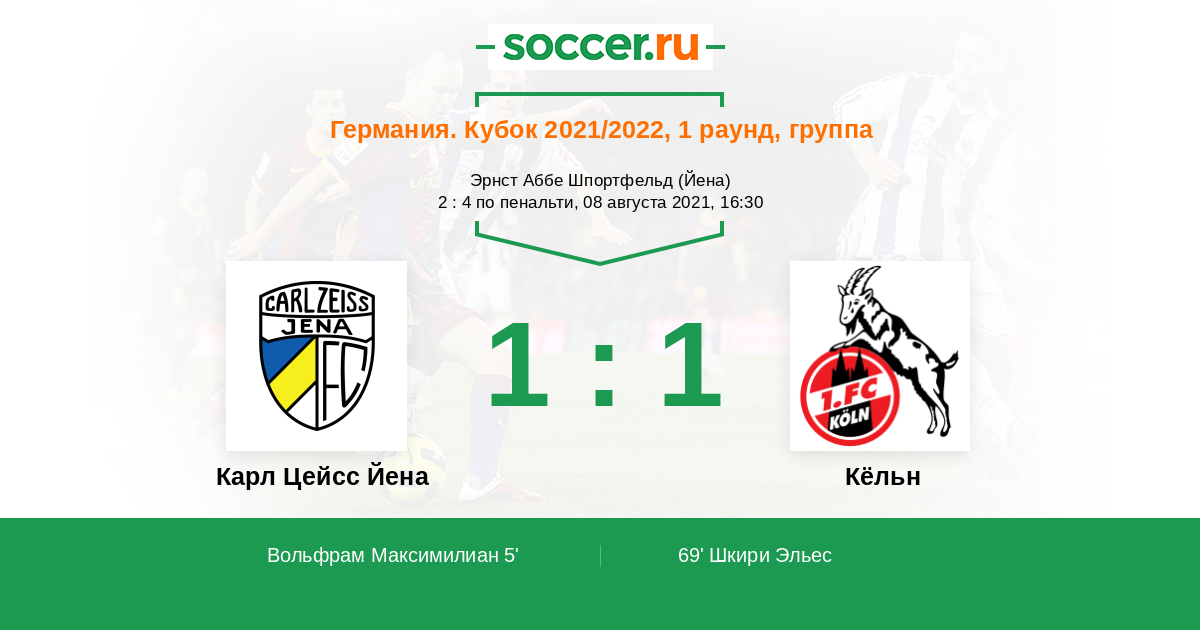 Карл Цейсс Йена - Кёльн: обзор матча 8 августа 2021