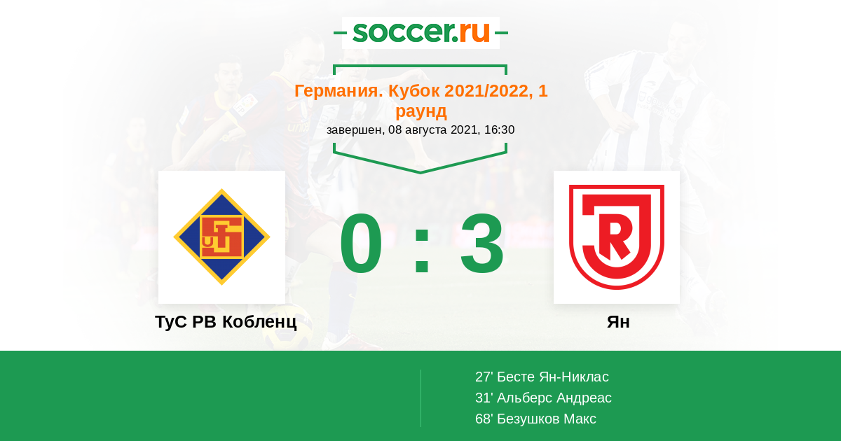 ТуС РВ Кобленц - Ян: обзор матча 8 августа 2021