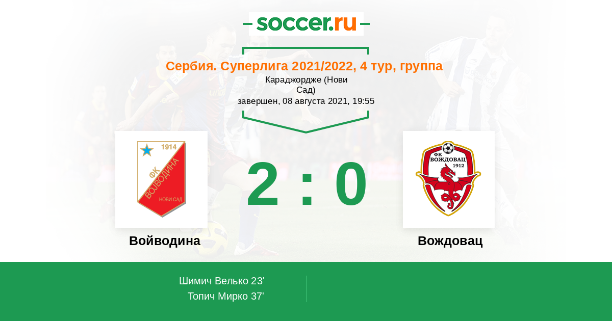 Войводина - Вождовац: обзор матча 8 августа 2021