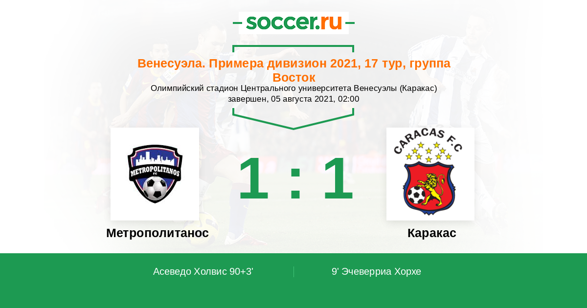 Метрополитанос - Каракас: обзор матча 5 августа 2021
