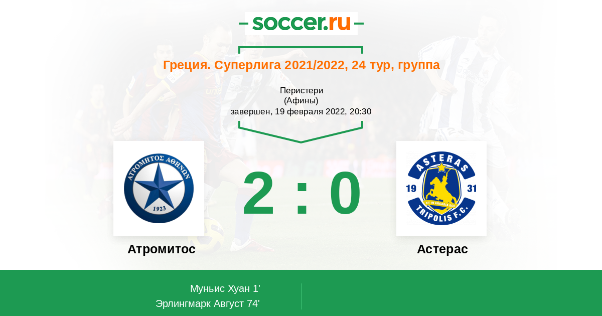 Атромитос - Астерас: обзор матча 19 февраля 2022
