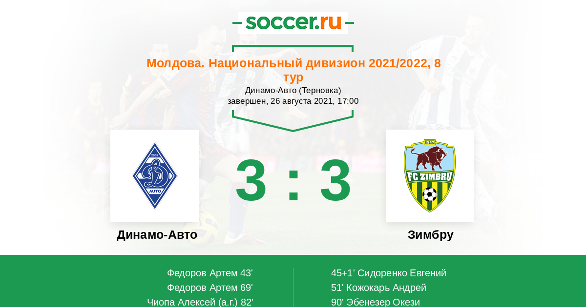 Динамо-Авто - Зимбру: обзор матча 26 августа 2021