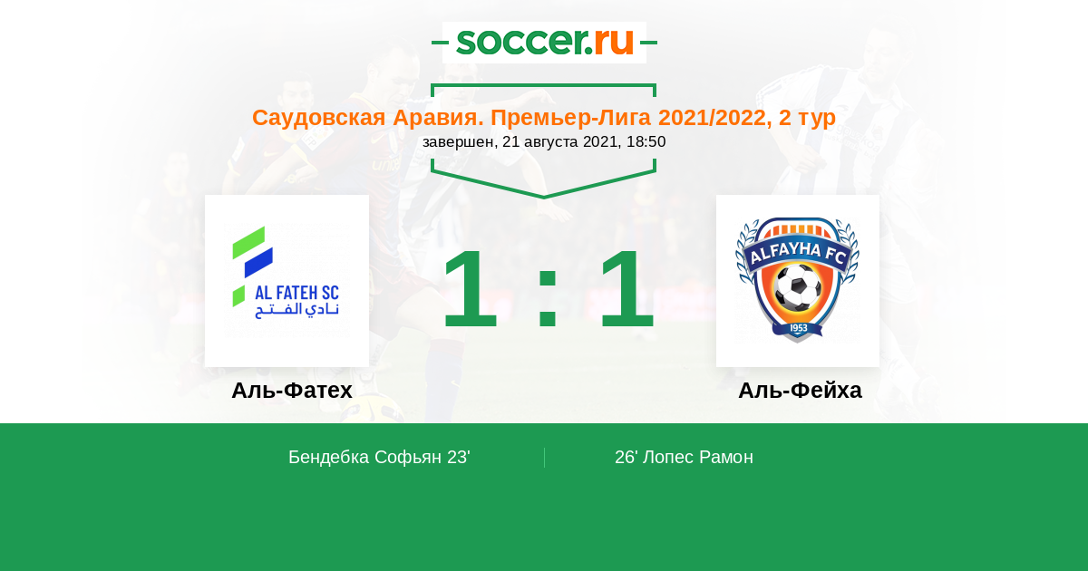Аль-Фатех - Аль-Фейха: обзор матча 21 августа 2021