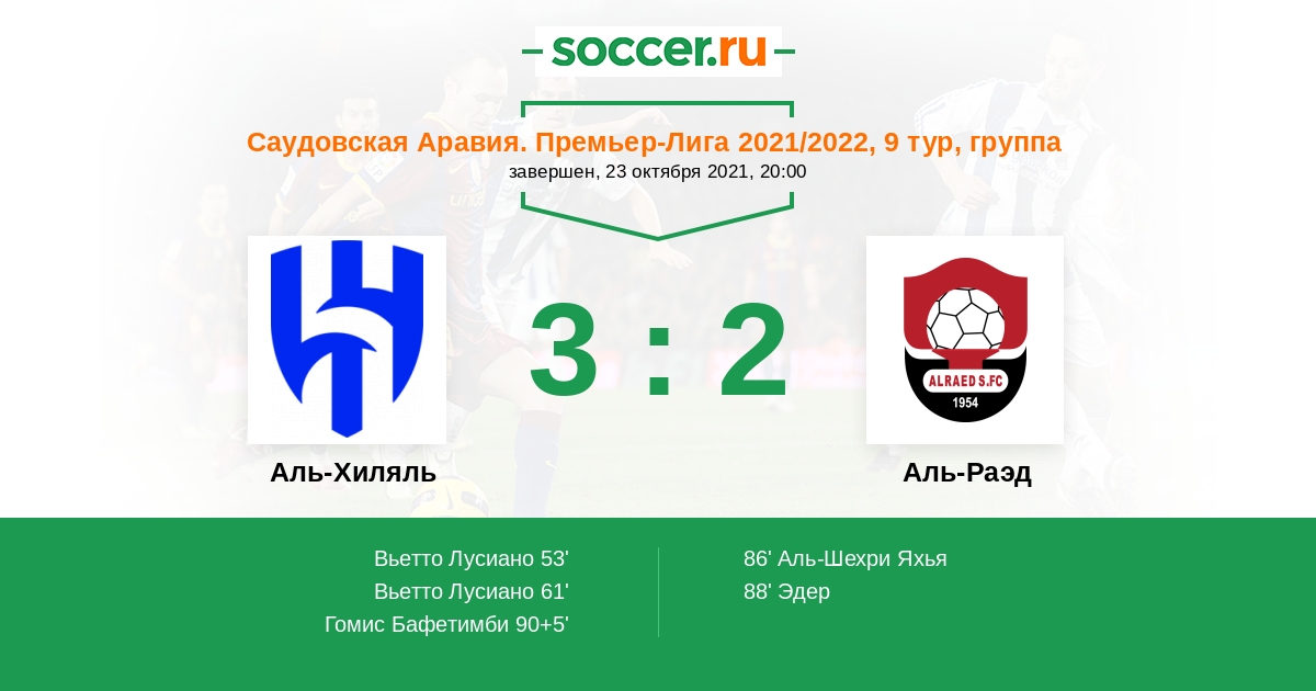 Аль-Хиляль - Аль-Раэд: обзор матча 23 октября 2021
