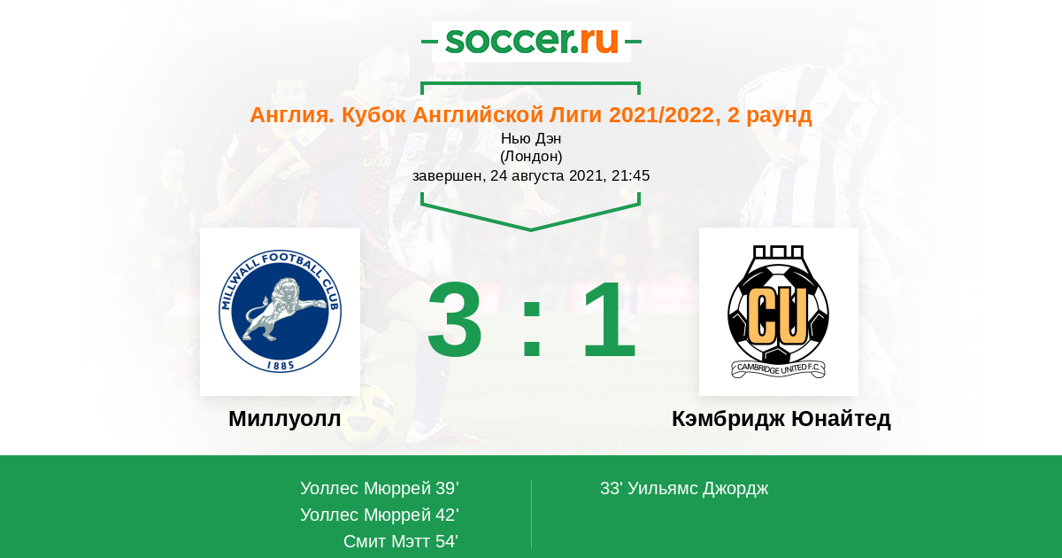 Миллуолл - Кэмбридж Юнайтед: обзор матча 24 августа 2021
