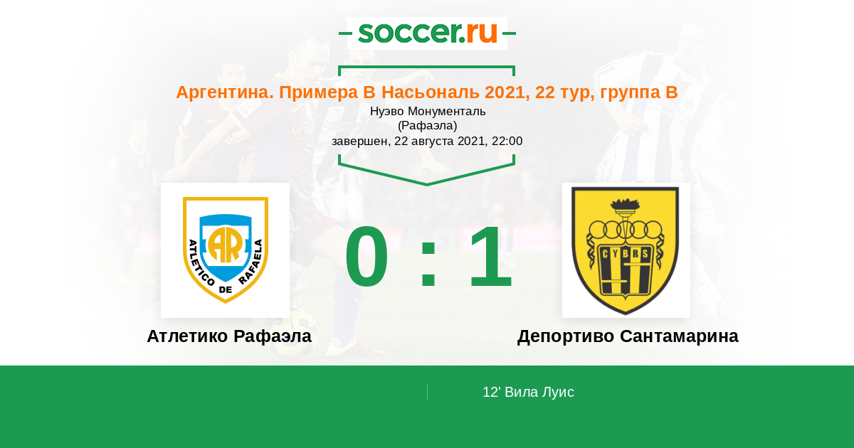Атлетико Рафаэла - Депортиво Сантамарина: обзор матча 22 августа 2021