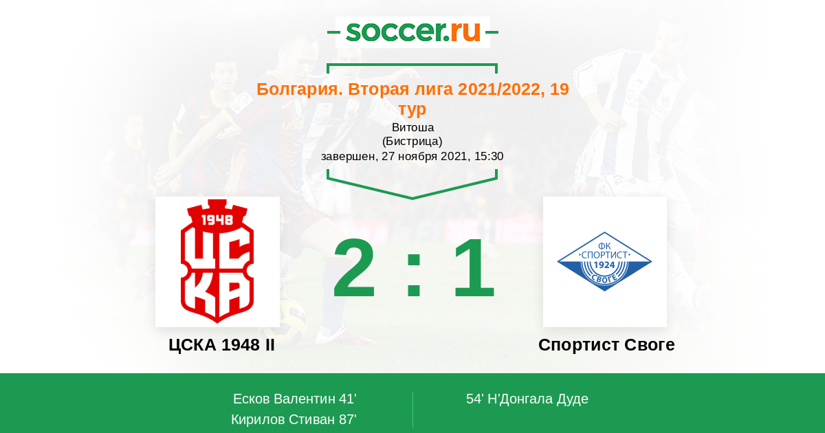 ЦСКА 1948 II - Спортист Своге: обзор матча 27 ноября 2021