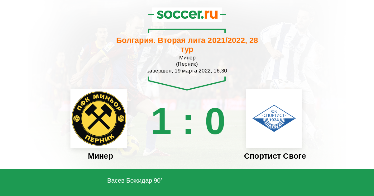 Минер - Спортист Своге: обзор матча 19 марта 2022