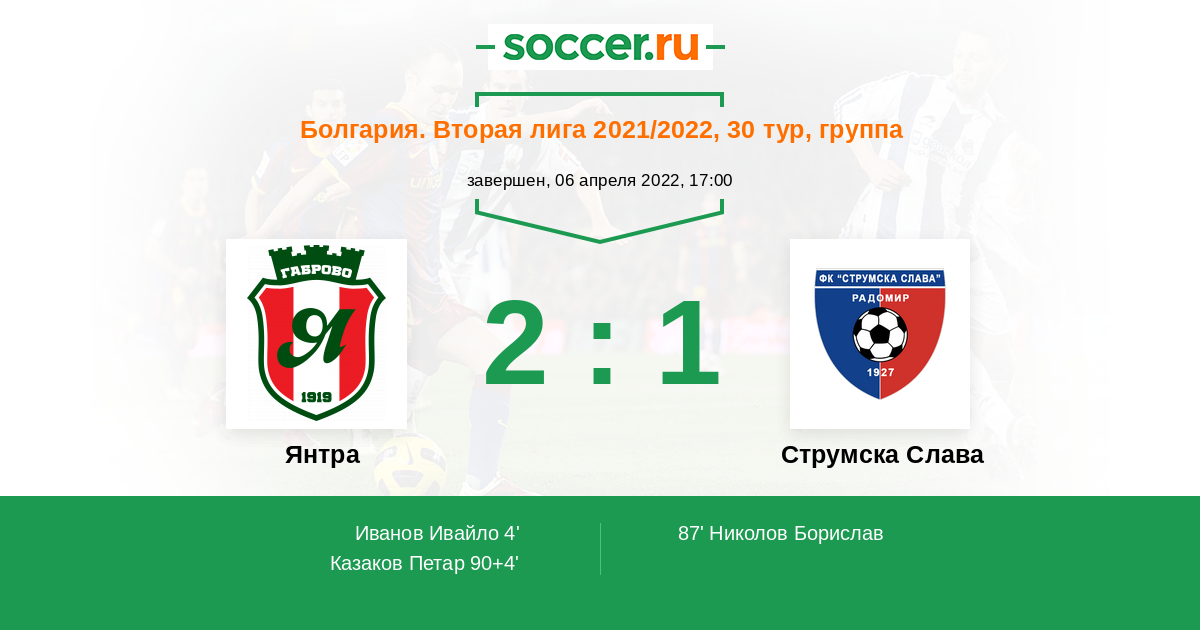 Янтра - Струмска Слава: обзор матча 6 апреля 2022