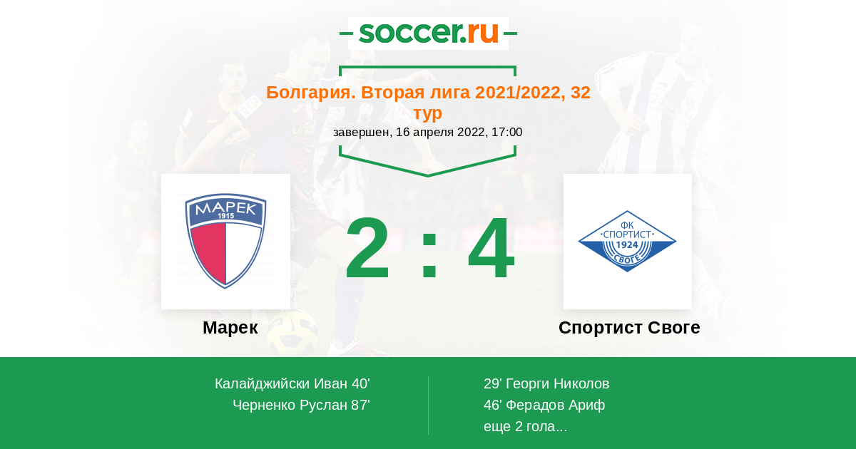 Марек - Спортист Своге: обзор матча 16 апреля 2022