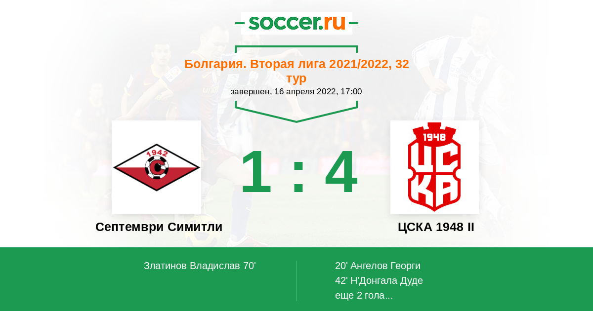 Септември Симитли - ЦСКА 1948 II: обзор матча 16 апреля 2022