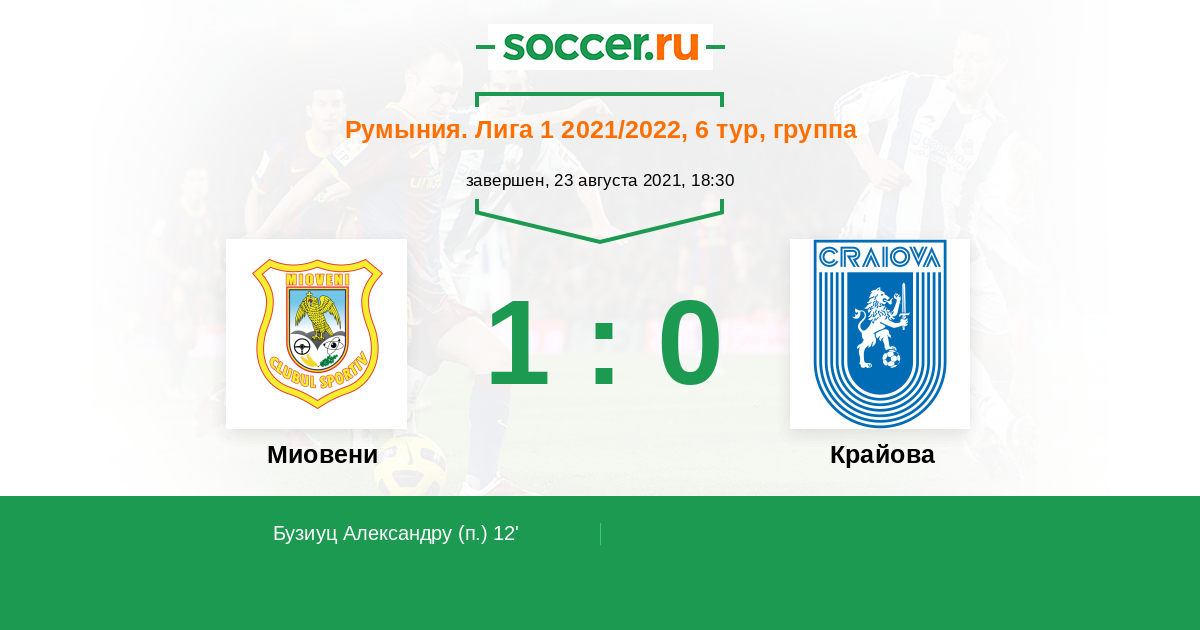 Миовени - Крайова: обзор матча 23 августа 2021