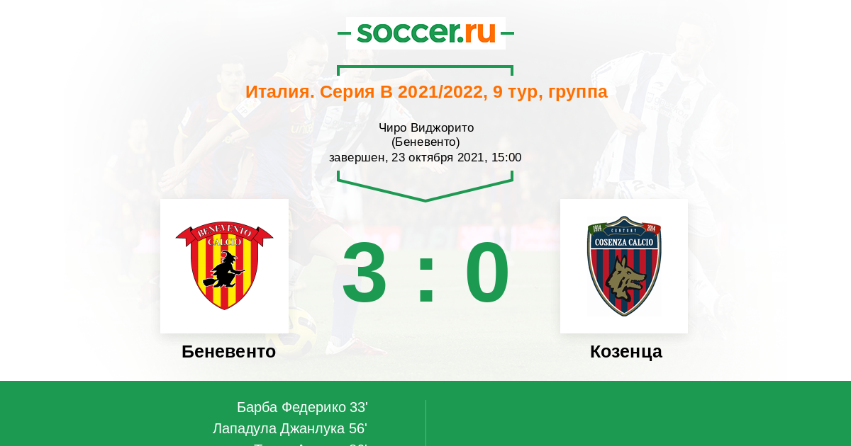 Беневенто - Козенца: обзор матча 23 октября 2021
