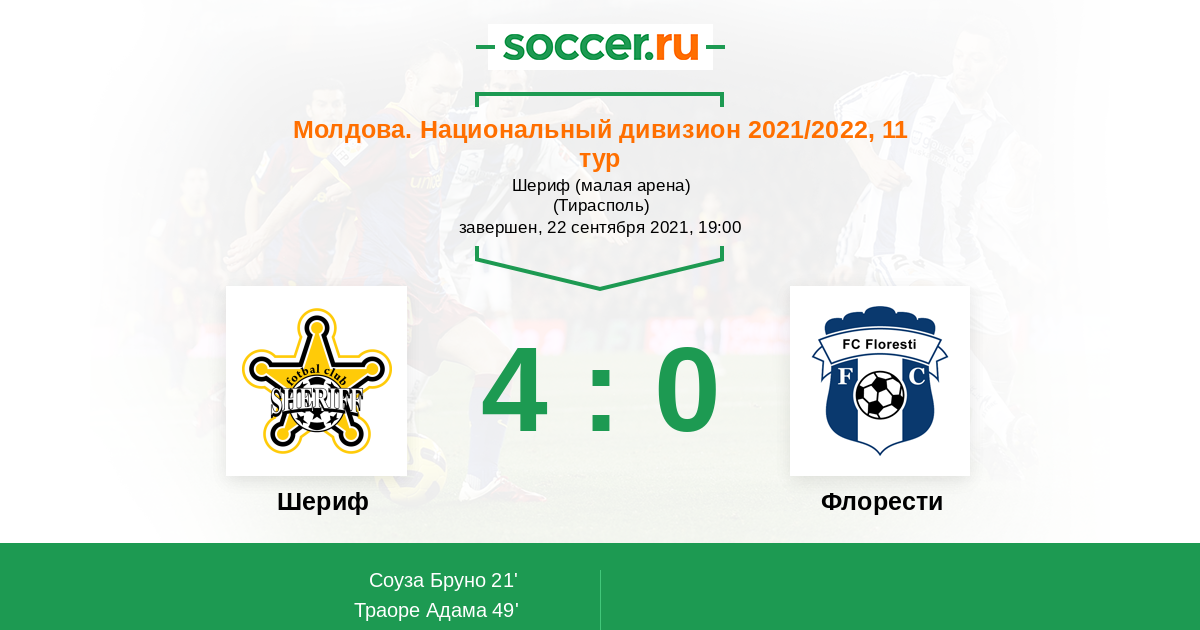 Шериф - Флорести: обзор матча 22 сентября 2021