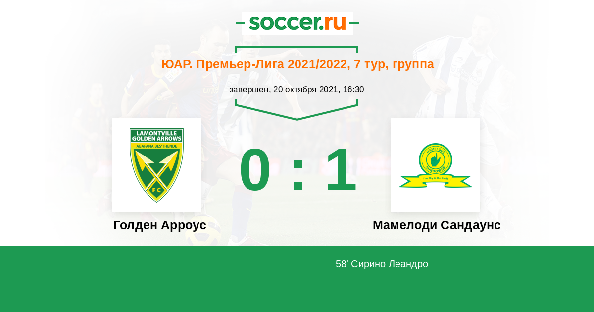 Голден Арроус - Мамелоди Сандаунс: обзор матча 20 октября 2021