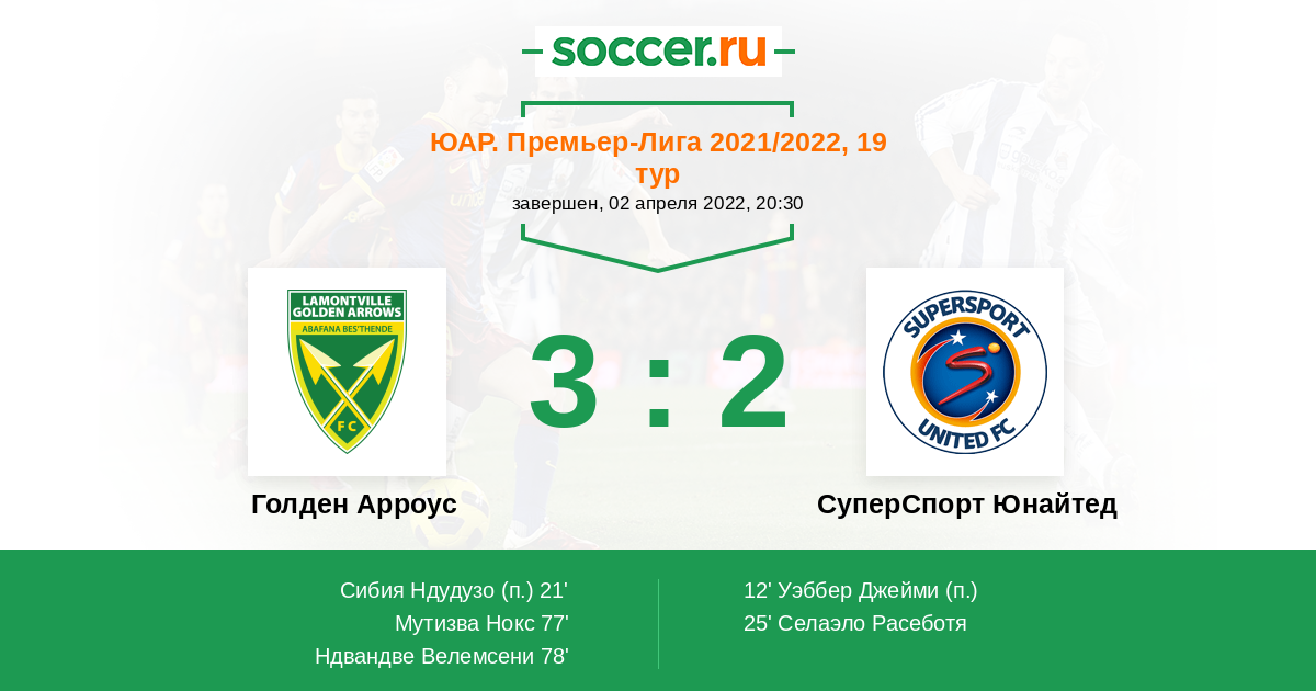 Голден Арроус - СуперСпорт Юнайтед: обзор матча 2 апреля 2022