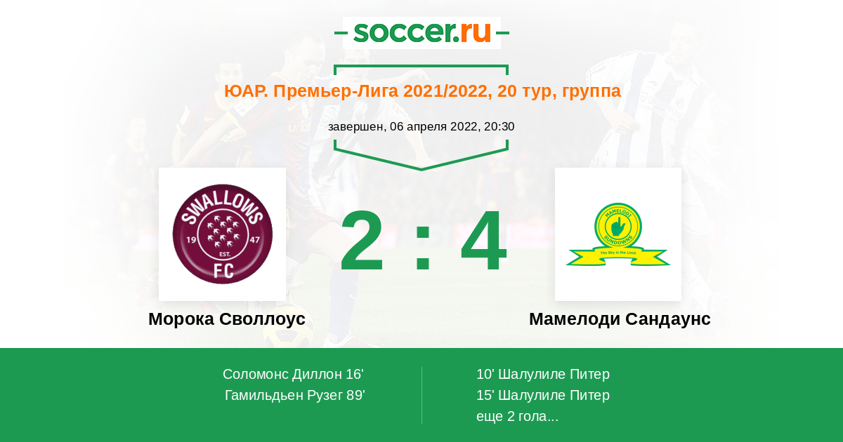 Морока Своллоус - Мамелоди Сандаунс: обзор матча 6 апреля 2022