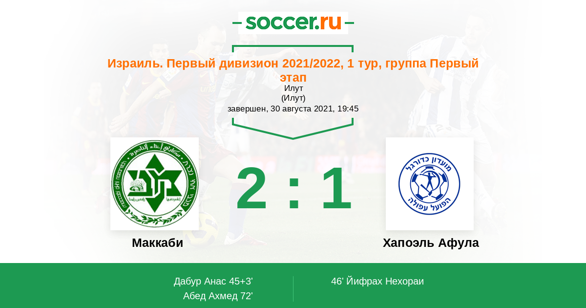 Маккаби - Хапоэль Афула: обзор матча 30 августа 2021
