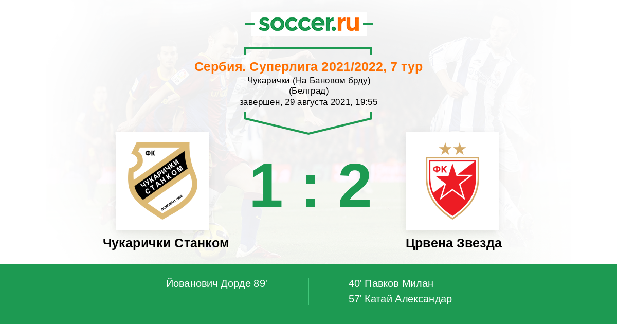 Чукарички Станком - Црвена Звезда: обзор матча 29 августа 2021